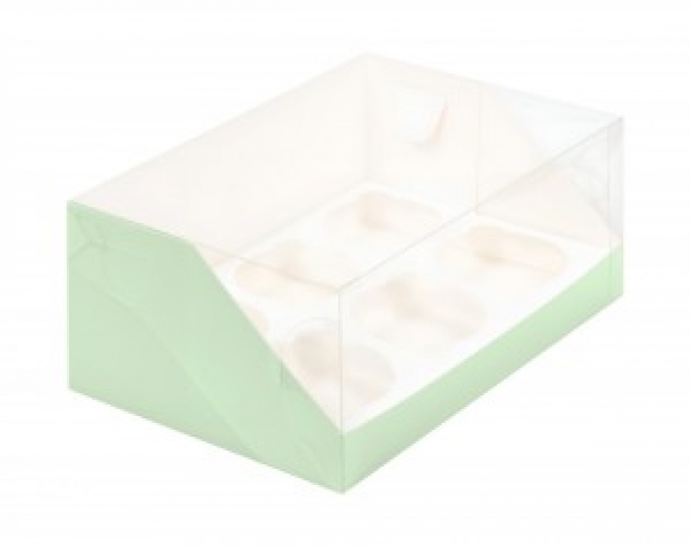 Коробка для 6 капкейков с прямоугольным окошком 235*160*100мм фисташковая, шт