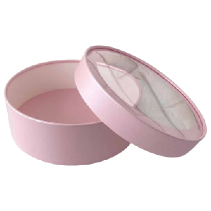 Коробка для зефира Круглая с окном, РОЗОВАЯ матовая, d200*h70мм, шт